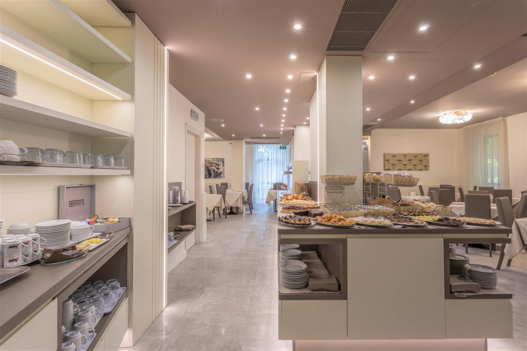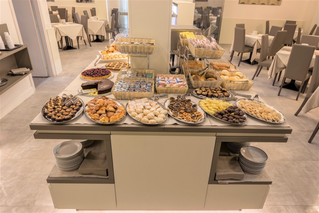 Il buongiorno si vede dal mattino! Un ricco buffet di colazione con dolci e affettati in un ambiente confortevole e climatizzato ti aspetta ogni giorno dalle 07:00 alle 10:00.